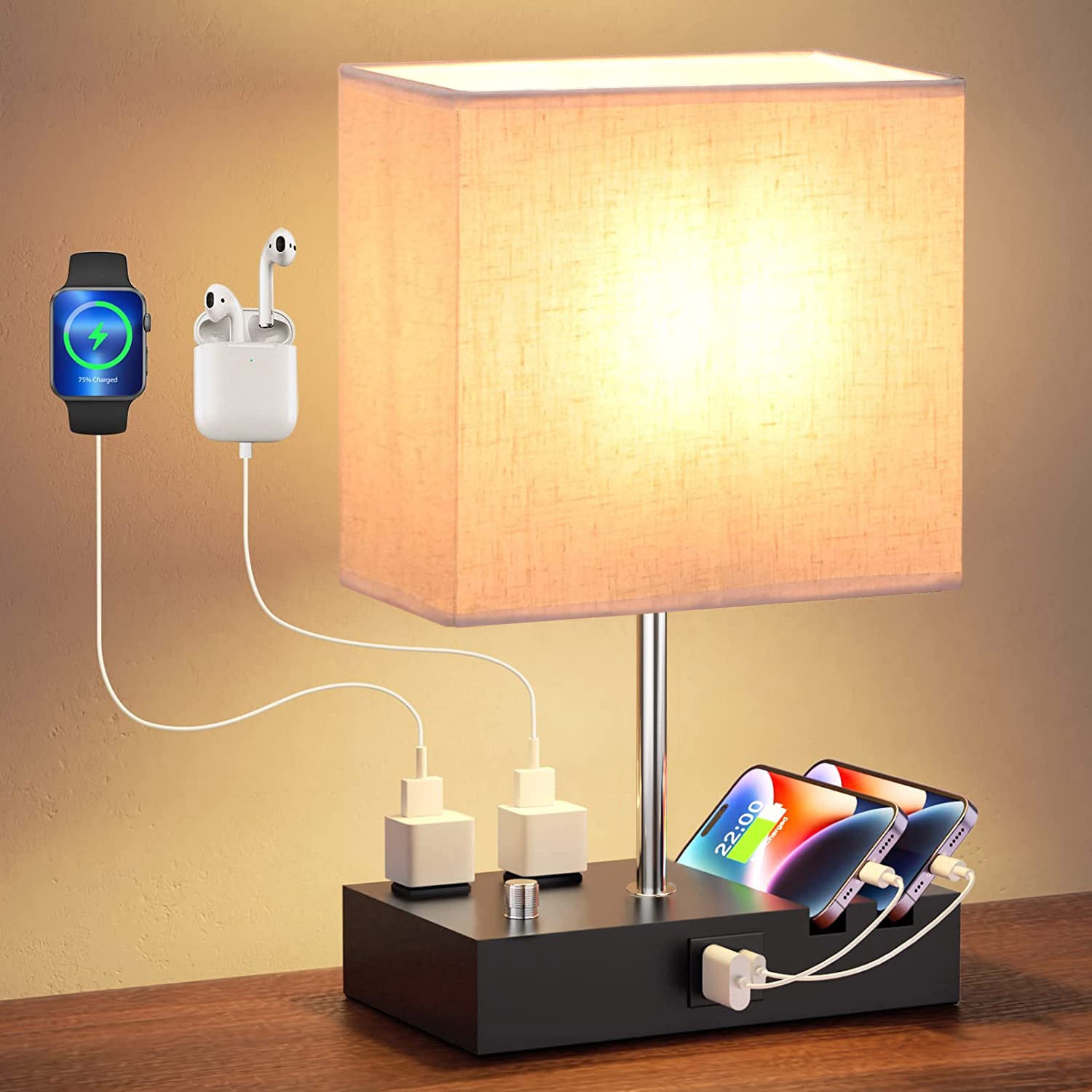 • *Dual USB Ports & 2 AC Outlets*: Always short of charging ports while reading or working in bed? This bedside lamp with dual USB ports & phone stands allow you to charge phones or tablets more conveniently. Besides,you can also charge other electronic devices with 2 AC outlets.